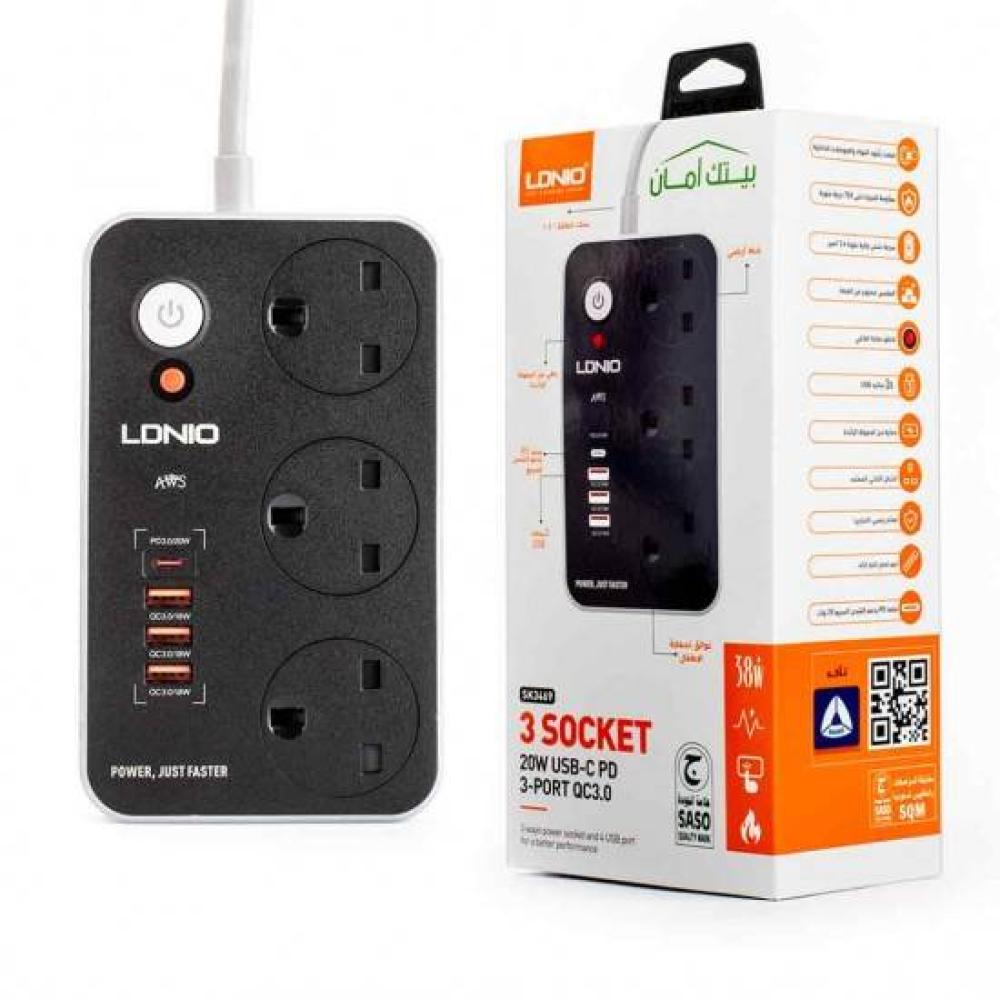 مميزاتها:تتحمل طاقة لغاية 2500 واط. ثلاث مداخل كهرباء – ثلاثي بريطاني آمن. ثلاث مداخل USB بتقنية QC3.0 للشحن السريع والذكي. مدخل تايب سي PD بقوة 20 وا...