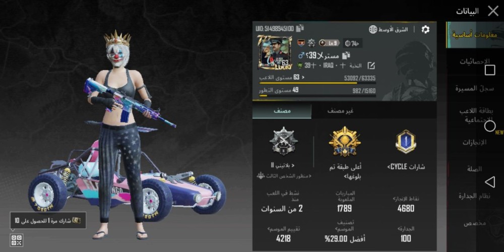 .حساب نسخه العالميه لفل الحساب 63 سيرفر الحساب الشرق الاوسط تقيم الحساب بلاتينيمعبى سكنات اسلحه UMP لفل 2 حبه ميلتريا صغيره ...